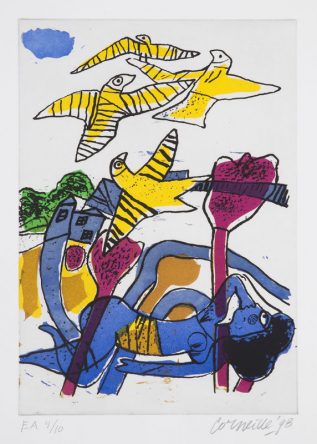 Together with Karel Appel and Constant, Corneille helped found the Dutch Experimental Group (1948) that later gave way to CoBrA. In 1950 Cornelis Guillaume van Beverloo – his official name – settled in Paris, where he exhibited in various shows.
