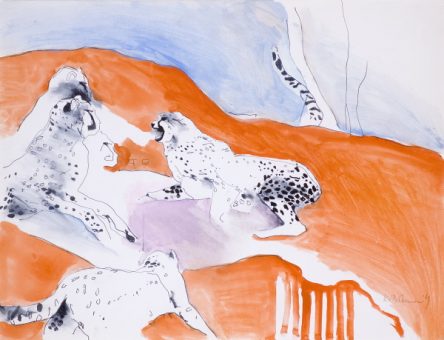 In the early Sixties Van Bohemen embarked on a series of large female nudes. After a sojourn in the United States he painted a series of striking paintings that take sports such as boxing, horse racing, cycling and car racing as their theme. These large canvases displayed his technical virtuosity. Trips across Africa yielded exotic paintings of savannah and jungle. For Van Bohemen, colour and form were paramount, his choice of subject less important. “I don’t want to work in an anecdotal way, no story-telling in paint”, he said of this.