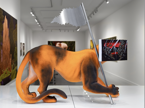 Sawatchrokorn draws on ancient Tai Yai (Shan) talismans such as Yuntra Temminck’s Golden Cat, believed to offer protection and charm. He views these symbols as early technologies—visual languages encoding belief and power. In Temminck’s Golden Cat Raising the Flag, the animal’s face becomes an imagined landscape, reflecting unseen territories within the artist himself.